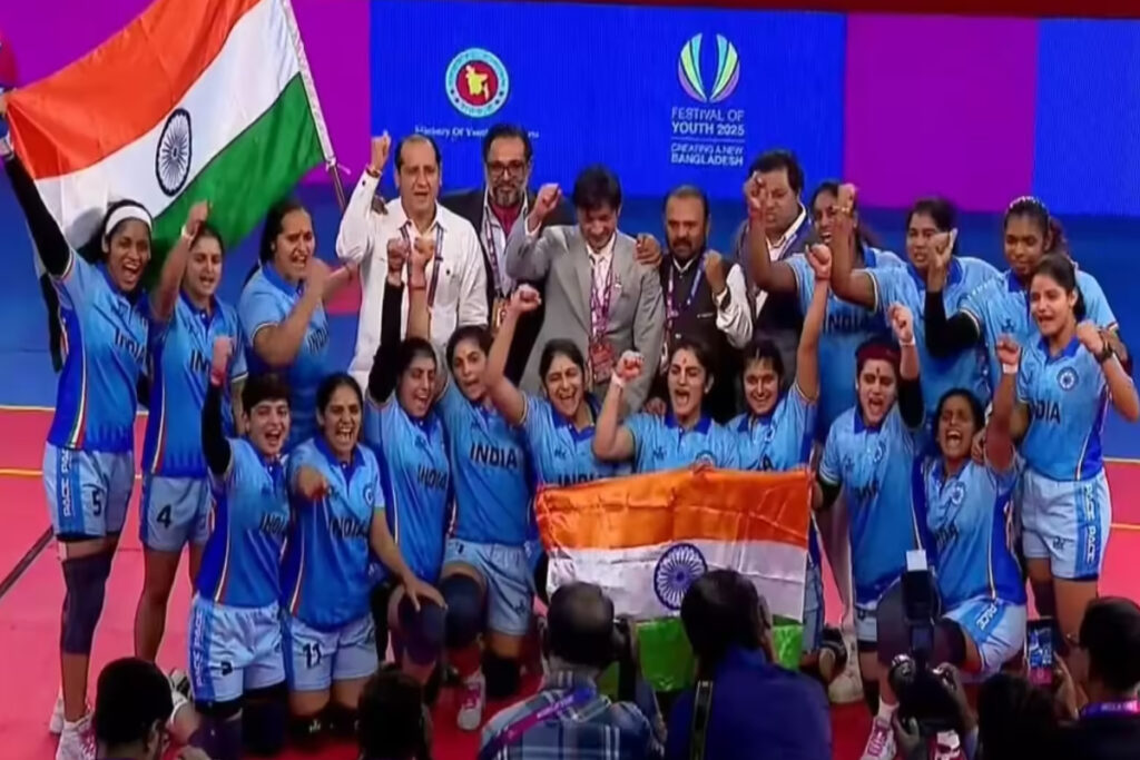 भारतीय महिला कबड्डी टीम ने सोमवार को ढाका के शहीद सुहरावर्दी इंडोर स्टेडियम में महिला कबड्डी वर्ल्ड कप 2025 के फाइनल में चीनी ताइपे को 35-28 से हराकर दूसरी लगातार विश्व खिताब अपने नाम कर लिया। 2012 के बाद यह दूसरा खिताब है, जो भारत की कबड्डी में वर्चस्व को मजबूती प्रदान करता है। टूर्नामेंट में 11 देशों ने भाग लिया, जिसमें भारत ने पूरे लीग स्टेज सहित सभी छह मैच जीतकर अजेय अभियान चलाया। कप्तान रीतु नेगी की अगुवाई में टीम ने शानदार रेडिंग और डिफेंस का प्रदर्शन किया, जबकि संजू देवी को टूर्नामेंट का सबसे मूल्यवान खिलाड़ी (MVP) चुना गया। इस जीत ने महिला कबड्डी को वैश्विक पटल पर नई ऊंचाई दी है।